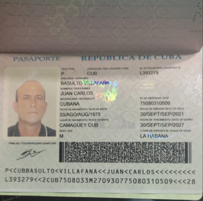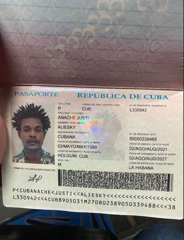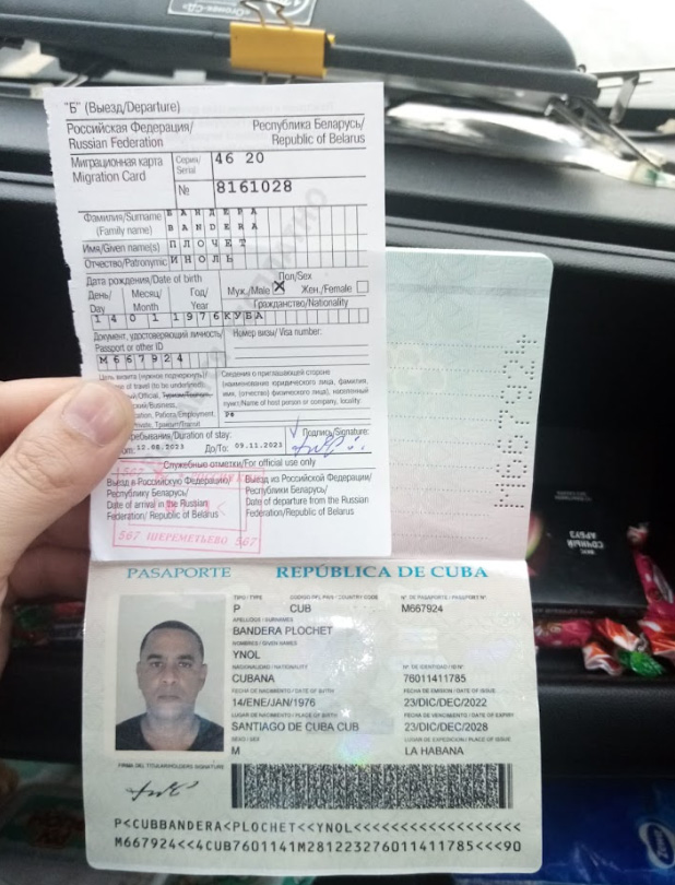 А ось кубинець Алієскі Аначе, 1989 року народження. З метаданих фото його паспорта зрозуміло, що вʼїхав він в РФ 18 липня 2023 року і одразу зробив фото паспорта куратору.