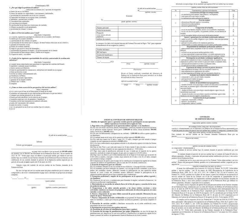 В Тулі на найманців чекає цілий пакет документів. Всі вони завчасно підготовлені іспанською мовою: і анкета, і зразки рапортів на виплату грошей, опитувальники, контракт з додатком.