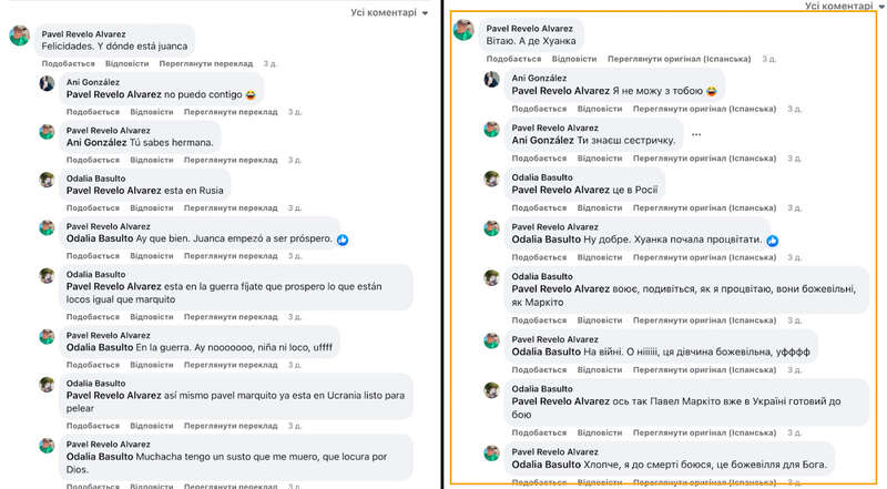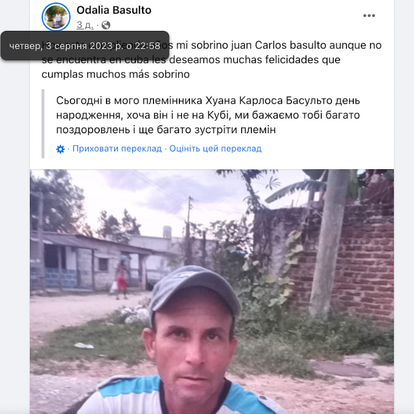 В коментарях до цього допису відбулася цікава світська бесіда, яку Google Translate доволі погано переклав, але суть ви зрозумієте. Тітонька Хуана Карлоса жаліється, що до Росії на війну поїхав ще один їх знайомий. Павел Маркіто. Але серед наших кубинців такого не було. Він точно не в цій партії з 193 осіб, яких нам вдалося викрити в Тулі, а значить кубинців було і, ймовірно, буде ще більше, якщо цей потік не зупинити.