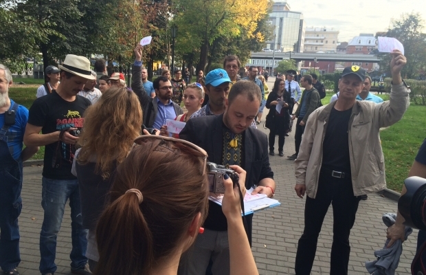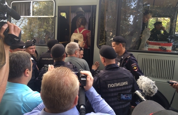 Також були затримані особи, які намагалися не допустити затримання і вступали в діалог з поліцією. Таким чином, до автозаку потрапив один з організаторів акції Олексій Домніков.