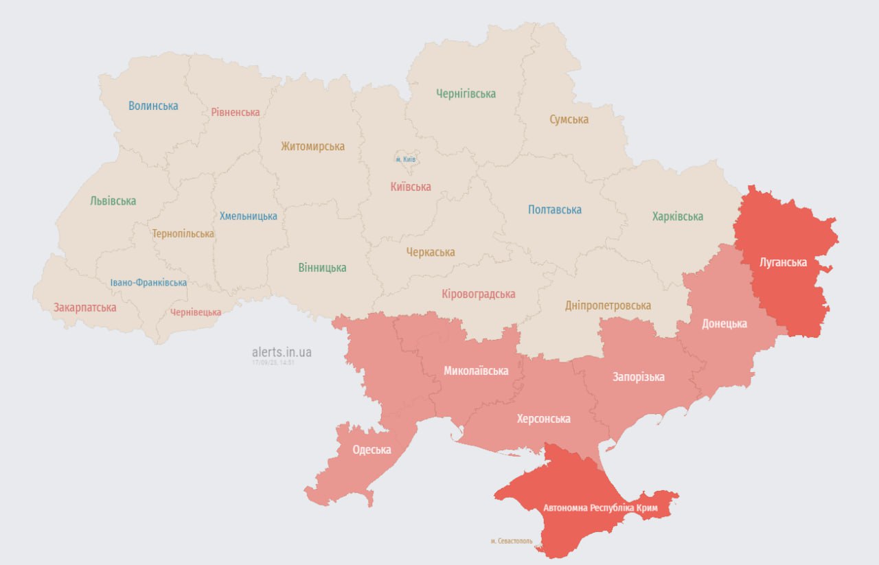 Повітряні сили ЗСУ попереджають, що в Одеській, Миколаївській та Херсонській областях ракетна небезпека.