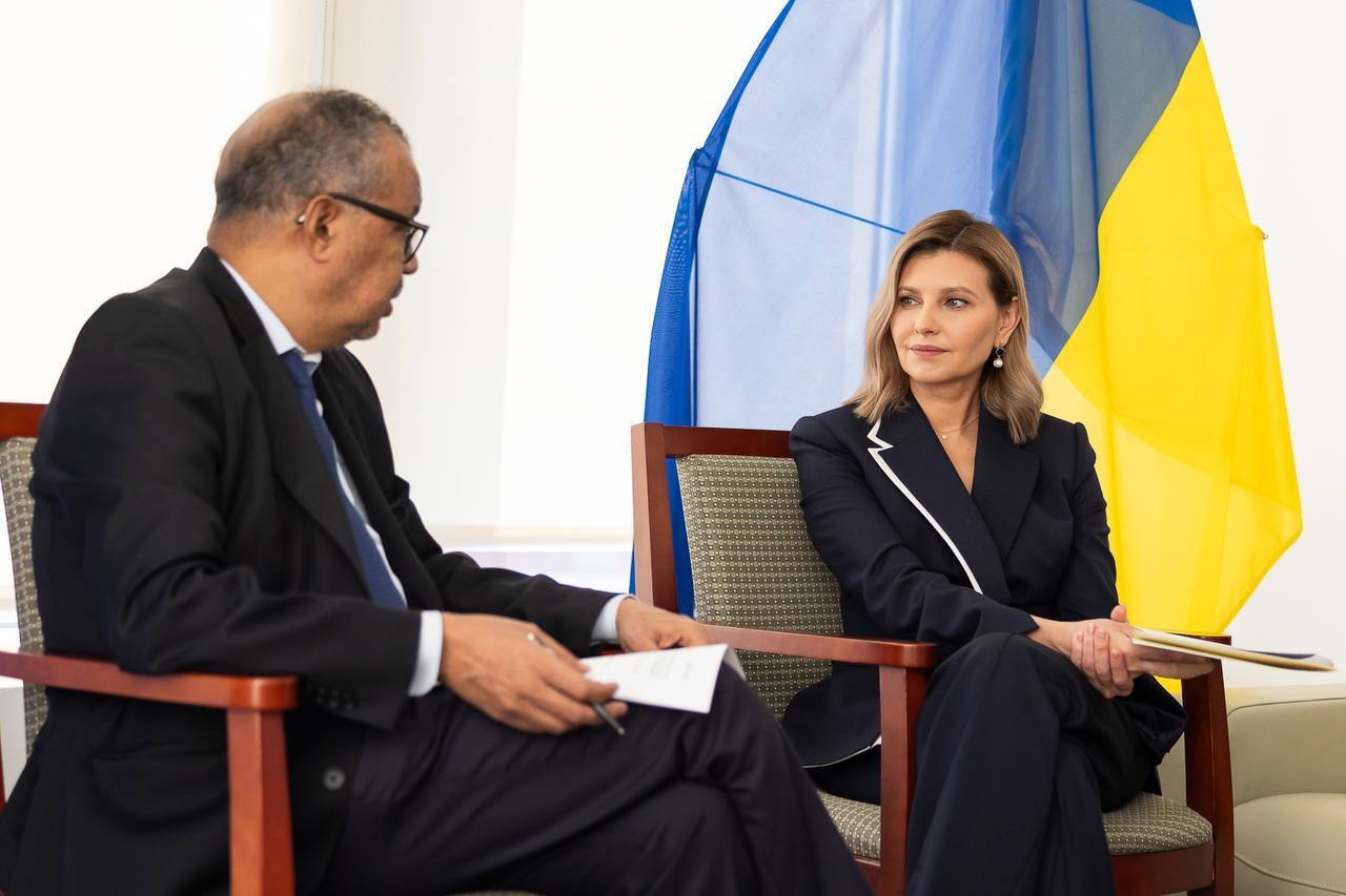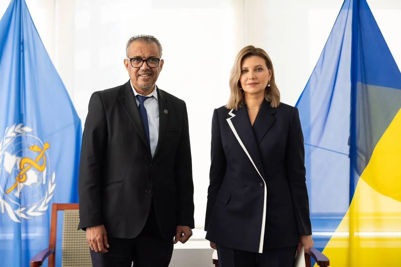 Перша леді України Олена Зеленська зустрілася з генеральним директором Всесвітньої організації охорони здоров’я (ВООЗ) Тедросом Аданомом Гебреєсусом у США, для чого обрала стриманий, але водночас вишуканий брючний костюм чорного кольору. Його родзинка – асиметричний подовжений жакет приталеного крою.