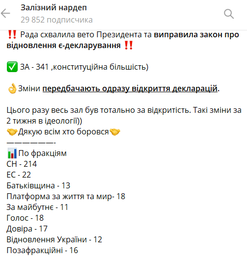 "За" – 341 голос, конституційна більшість", – йдеться у повідомленні.