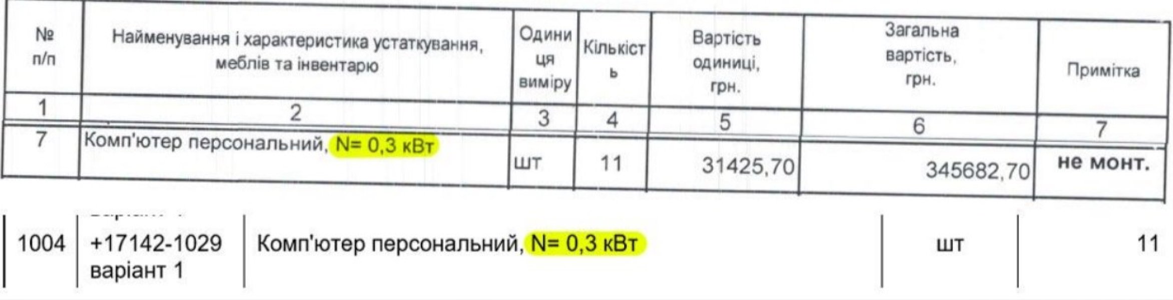 У дитячому відділенні пропонується встановити й 11 нових персональних комп’ютерів за 345,7 тис. грн. З їхніх характеристик вказується тільки потужність блоків живлення (300 Вт). Замовник ризикує отримати продукцію з потрійною переплатою.