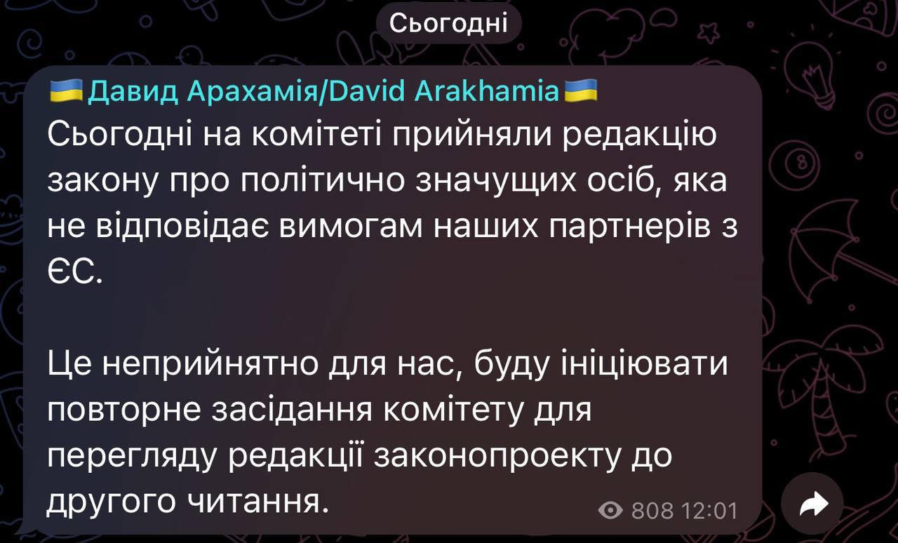 Давид Арахамія визнає, що авторитет керівництва у фракції «Слуги народу» сильно похитнувся