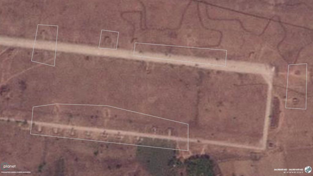 На вчорашніх знімках видно багато чорних точок на злітно-посадковій смузі, які, ймовірно, є гелікоптерами.