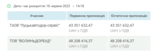 Крок 4. Після цього 7 серпня замовник визнає переможцем «Волиньдорбуд», з дорожчою на 6 мільйонів ціною.
