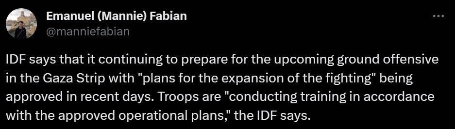 Останніми днями було схвалено "плани розширення бойових дій", пише в колишньому твіттері журналіст видання Times of Israel.