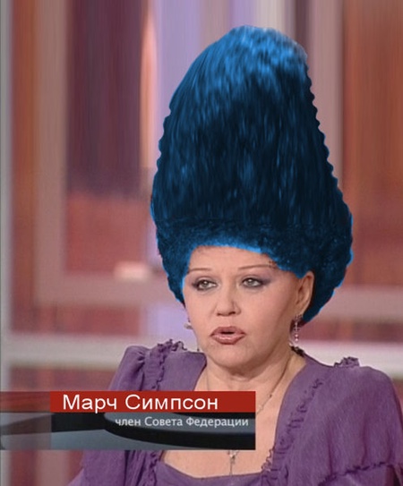 Зокрема, вже не один рік поспіль сенатор Хакасії та член Ради Федерації Валентина Петренко надихає блогерів на фотожаби, передає Таблоїд. Петренко уже багато років носить одну й ту саму зачіску Жіночка не зраджує своїй дивакуватій зачісці, а в мережі час від часу порівнюють її із папахою, гніздом чи мультяшною Мардж Сімпсон.