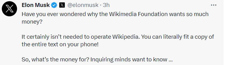 Перед тим, як запропонувати таке перейменування, Маск запідозрив "Вікіпедію" у нецільовому витрачанні коштів.