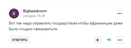 "Ось це облом. Навіть і помріяти не дали про матч із класним суперником", "Ось так треба керувати державою, щоб африканцям навіть було соромно зв’язуватися", "Блін, навіть Сенегал гидує…" – журяться у коментарях.
