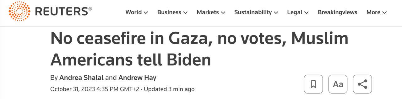 Мусульмани з Демократичної партії США виставили Байдену ультиматум, що якщо він не досягне припинення вогню в секторі Газа до сьогоднішнього вечора, вони працюватимуть проти збору пожертв та голосів для його переобрання у 2024 році.