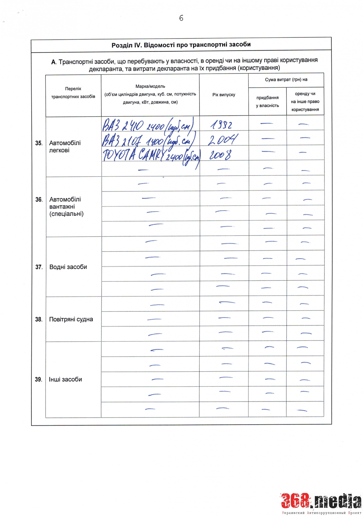 Квартиры у депутата в собственности нет, т.к. она оформлена на жену (64 кв. метра). Зато у семьи есть целый автопарк в виде четырех автомобилей – два «ВАЗа», а также Toyota Camry и Toyota Rav4.
