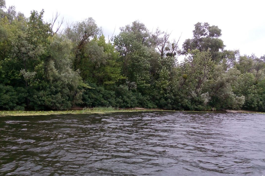 Береги поросли кущами, через які складно, а подекуди і неможливо, вийти до Дніпра.