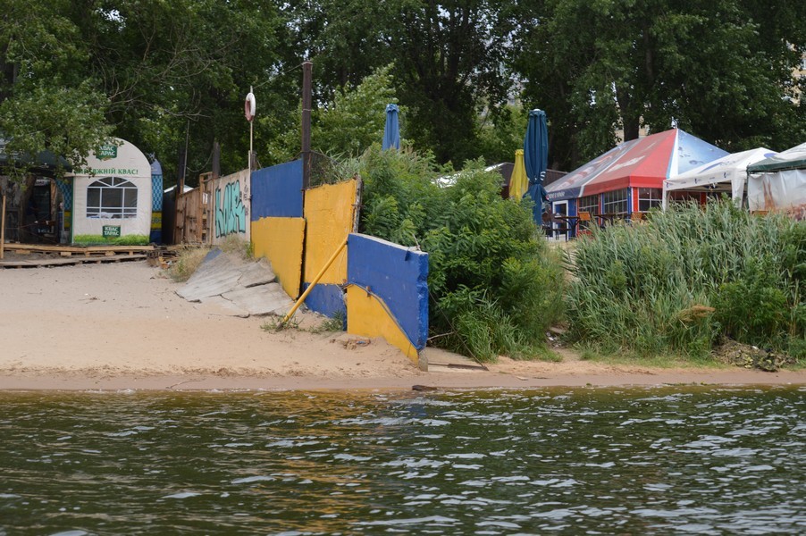 Замість того, аби притягувати до себе киян та туристів, вони закриті для проходу і слугують лише для багатіїв. Наприклад, яхт-клуб біля елітного житлового комплексу «Рів’єра Ріверсайд», що біля мосту Метро, незаконно перекрив вихід до Дніпра, відгородивши берег парканами та посадивши охоронця на вході.