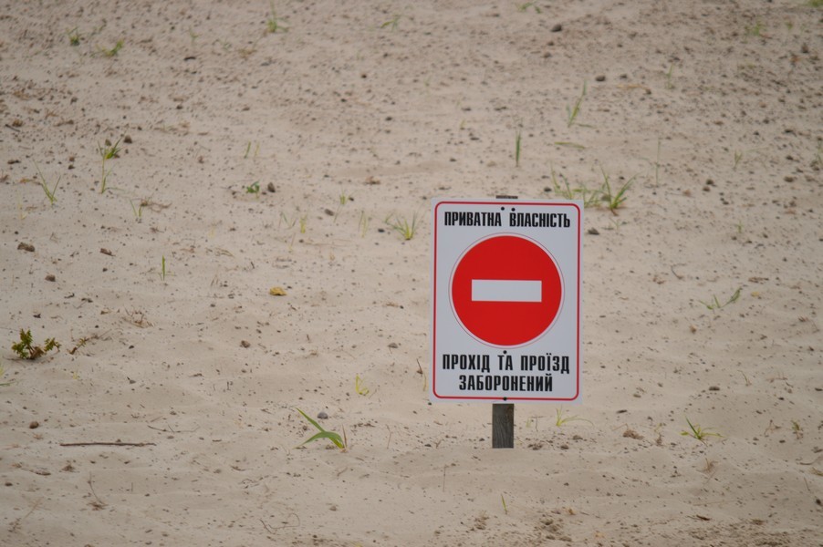 Кінцева точка — коса. Тут дачний кооператив, за словами місцевих — міліцейський. У самому кінці маршруту дорогу перегороджують ворота, за два будинки — ще одні. Гарний приклад довіри між сусідами. Однак ми пролазимо на відгороджену територію через чагарники. Декілька хвилин дряпаємо ноги об гілки та кущі. За другими воротами, перед останньою ділянкою стоїть цього разу вже цегляний паркан, який закінчується прямо у воді.