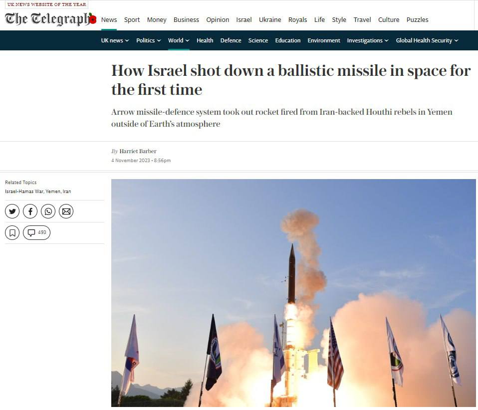 The Telegraph: Ізраїль першим у світі збив балістичну ракету в космосі