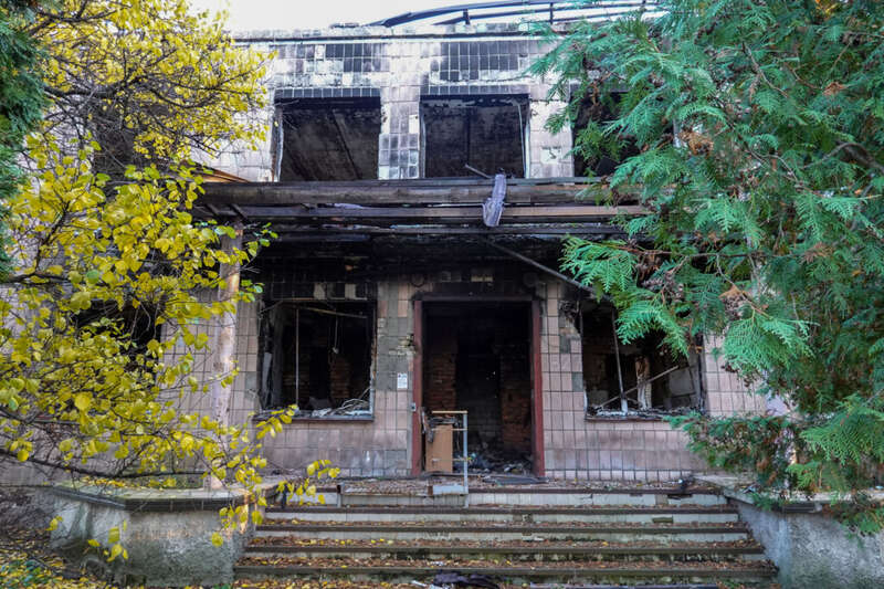 Зруйнована будівля суду у Бородянці, 2 листопада 2023. Фото: Тетяна Козак, Ґрати