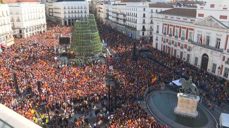 Десятки тисяч людей протестують в неділю по всій Іспанії проти планів виконувача обов’язків прем’єр-міністра Педро Санчеса амністувати каталонських сепаратистів в обмін на підтримку ще одного терміну на посаді.