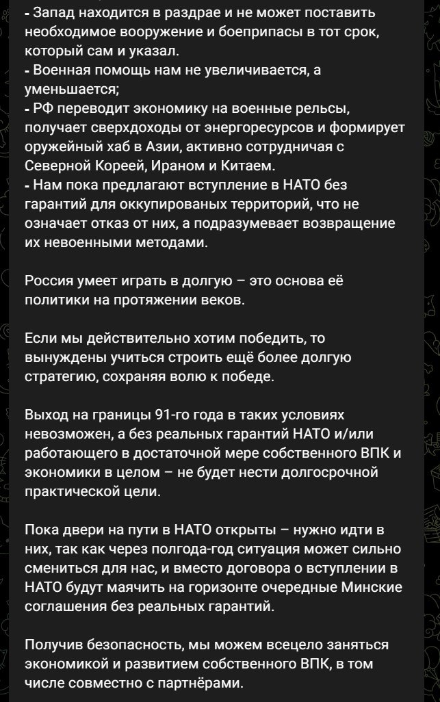 Захід же, на думку Арестовича, "перебуває у роздраті і не може поставити необхідне озброєння та боєприпаси в той термін, який сам і вказав". За підсумками військова допомога Україні нині зменшується.