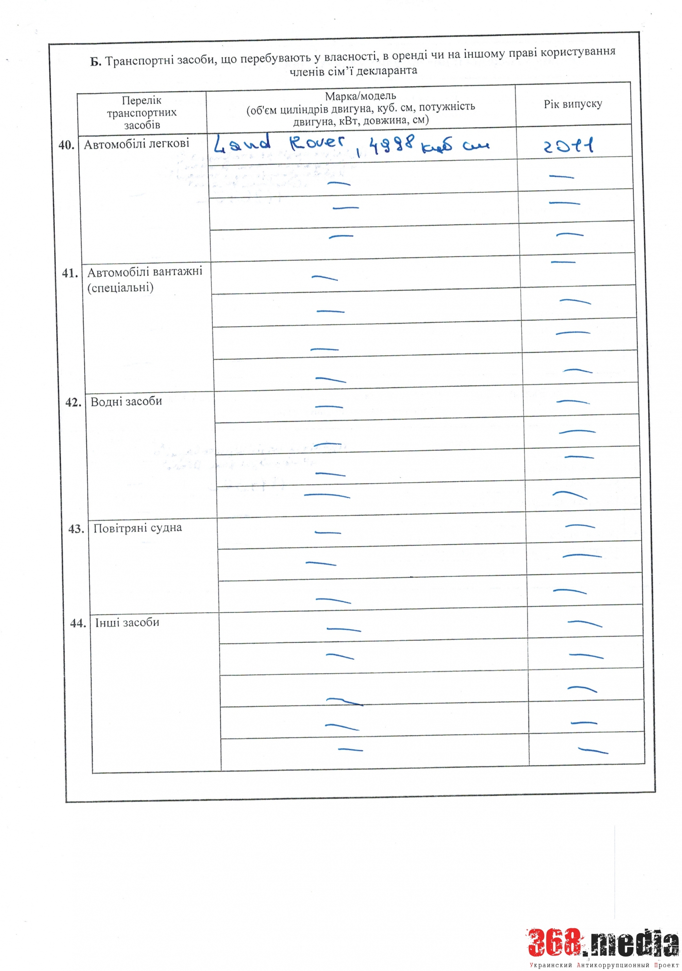 Отметим, что в декларации Кучука 2011 года у его супруги отсутствал земельный участок площадью в 3,5 тыс. кв. метров (информации о его приобретении нет), но в ее собственности была другой участок в 248 кв. метров. Тогда на содержание имущества ушло 11 тыс. гривен. При этом у его супруги была другая инормака – Range Rover 2006.