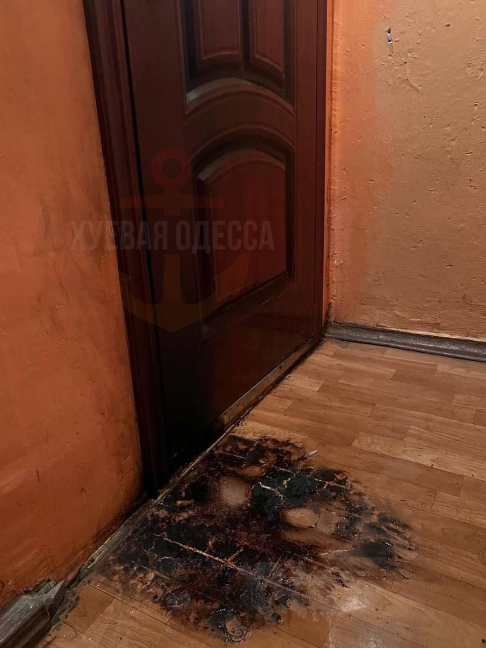 Вчора, через тиждень після стрілянини з автомата по вікнах в Аркадії, до поліції звернулася 17-річна дочка колишньої дружини Домбровського і повідомила, що на вулиці Дворянській невідомі підпалили двері її квартири.