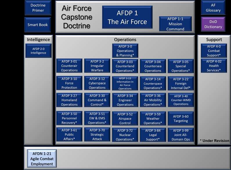 На наступному фото – дерево керівних документів ВПС ЗС США для організації, ведення та забезпечення війни в повітрі. Хочеться сподіватися, що штабні офіцери відповідних структур вчасно вирушили на навчання.