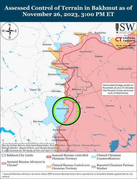 Повідомляється, що 26 листопада українські сили продовжували контратакувати на лінії фронту в Авдіївці.