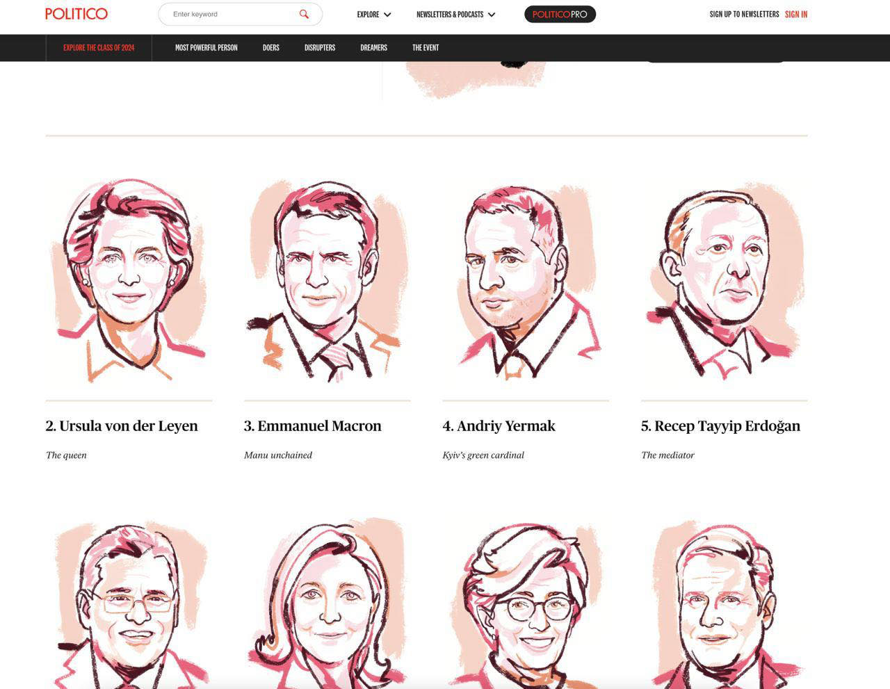 Щороку видання створює рейтинг, аналізуючи європейських діячів. У ньому є три категорії: виконавець, мрійник та руйнівник.
