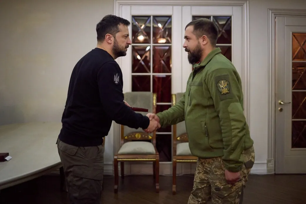 Президент України Володимир Зеленський під час робочої поїздки на Херсонщину 29 листопада зустрівся з військовими, які виконують наступальні операції в цьому регіоні, та вручив їм нагороди. Крім того, глава держави провів нараду щодо оперативної ситуації та перебігу бойових дій на лівому березі Дніпра.
