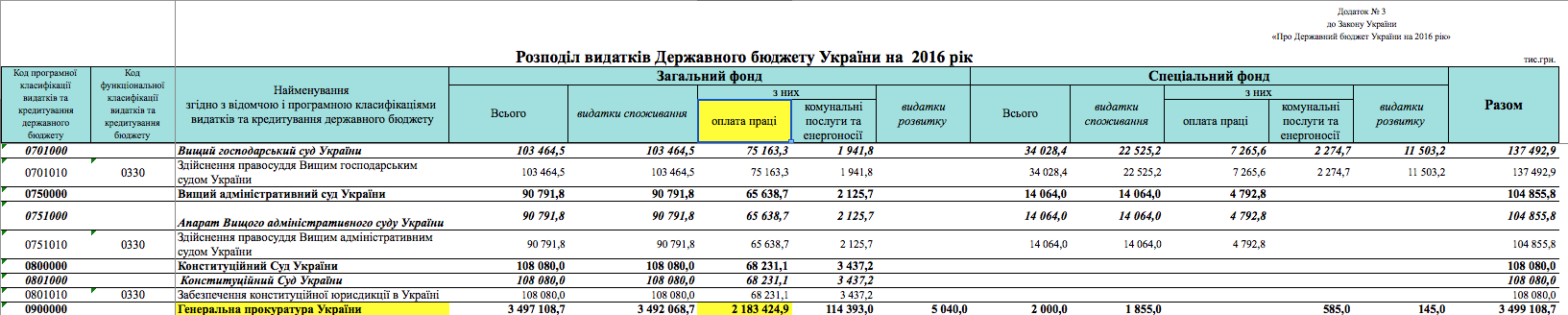 В «черновом» варианте проекта государственного бюджета Украины на 2016 год предлагается на фонд заработной платы ГПУ выделить почти 2,2 миллиарда гривен. То есть, увеличение составляет всего лишь около 300 миллионов гривен.