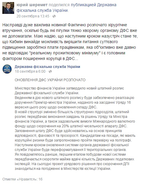 Объяснил такую «насущую» необходимость новоиспеченный фискал просто – нужно создать действенную систему борьбы с коррупцией в органах ГФС. Ну а дабы особо не заморачиваться и не составлять официальные жалобы на действия налоговиков, наш герой предложил народу просто «кидать» факты коррупции со стороны фискалов ему в личные сообщения. Что же касается проверки достоверности такой информации, которая может быть запросто отправлена с липового аккаунта с целью «расправы» нечистых на руку коммерсантов над неугодным и несговорчивым сотрудником Службы, «фейсбучный» особист Шеремет не пояснил.