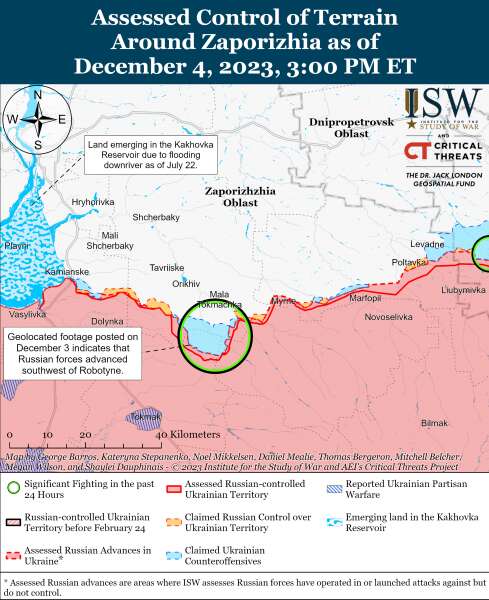 Російські війська продовжували наземні атаки в районі кордону Донецько-Запорізької областей, але 4 грудня не мали жодних успіхів.