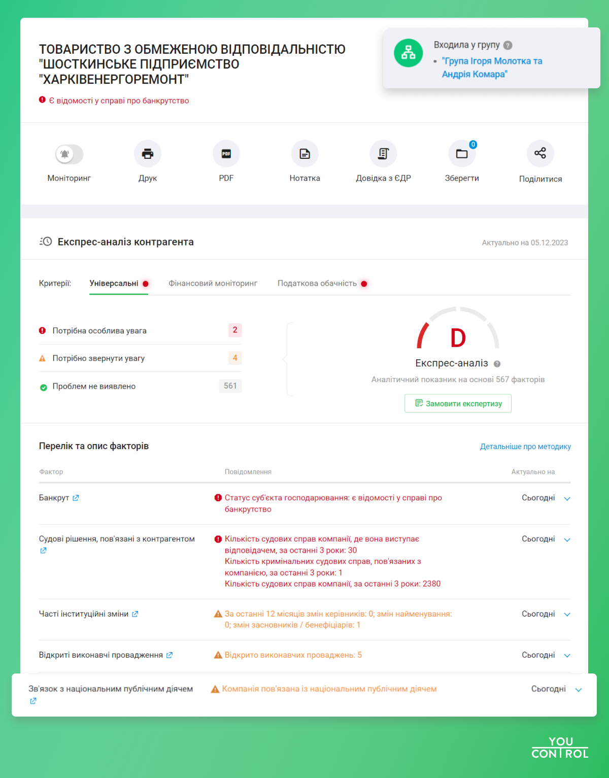 Чверть чинних народних депутатів пов’язані зі 100 фінансово-промисловими групами, доданими до системи YouControl. За період 24.02.2022 – 31.10.2023 рр. до складу 45 груп, що пов’язані з чинними та колишніми народними обранцями 9 скликання, увійшла 151 українська юридична особа.