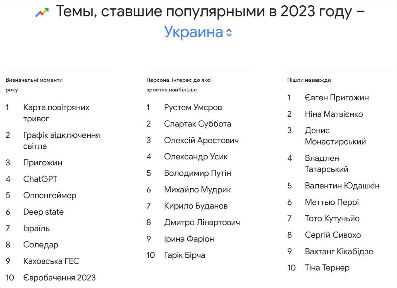 Google опублікував популярні тренди в Україні за 2023 рік