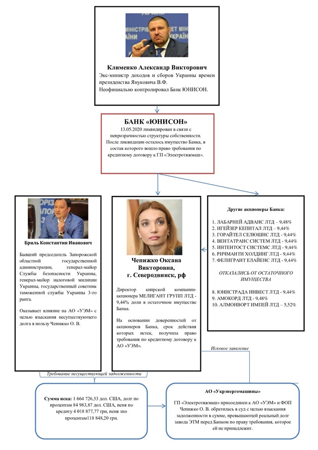 Отже, все по порядку. У далекому 2015 році харківське державне підприємство «Електроважмаш» уклало кредитний договір з банком «Юнісон». Навряд чи хтось із читачів згадає, що це за банк, бо він був не великим і запам’ятався фахівцям ринку лише тим, що входив у сферу впливу Олександра Клименка. Був такий міністр доходів та зборів за Януковича. Ефективність цього «ефективного менеджера» визначалася дружбою із сином Януковича Олександром, чия ефективність у свою чергу визначалася не освітою стоматолога, а становищем наслідного принца. Загалом це була класична корупційна вертикаль, яка в Україні отримала назву «Сім’я», і Клименко був невід’ємною її частиною.