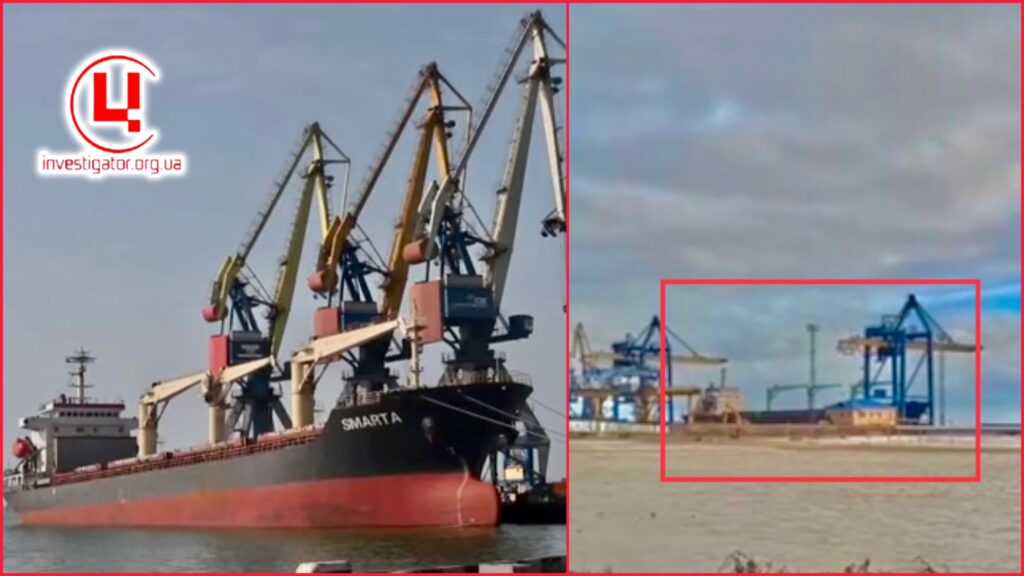 Судно «Smarta» в порту тимчасово окупованого Маріуполя влітку 2022 р.(ліворуч) та 27.11.2023 р.(праворуч)