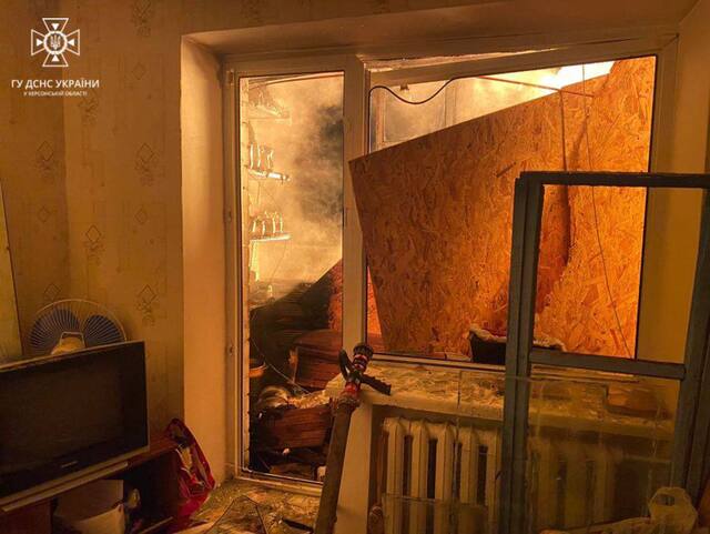 У ДСНС показали кадри з наслідками вечірнього ворожого обстрілу житлових кварталів Херсона