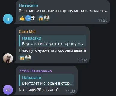 У коментарях під ним люди підтверджували, що чули гучний звук в Єйську, зазначаючи, що після нього у бік моря "помчали вертоліт і швидкі".