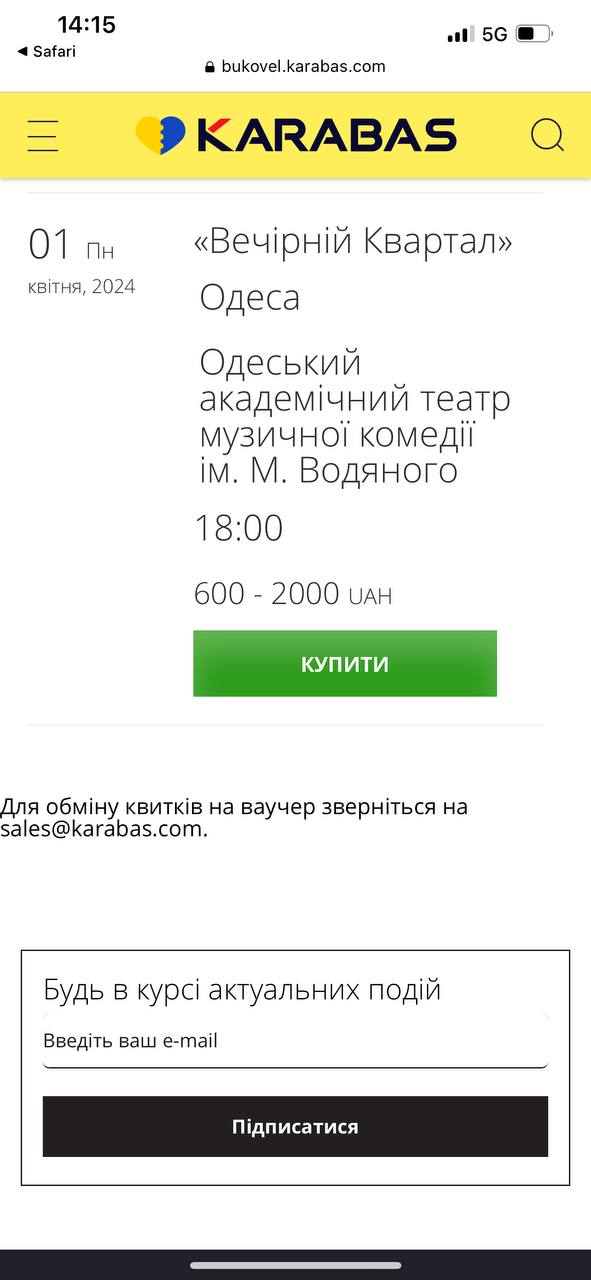 "Вечірній квартал" скасував свій виступ на гірськолижному курорті Буковель, який був запланований на завтра. Квитки на виступ коміків коштували від 1199 до 2499 гривень.