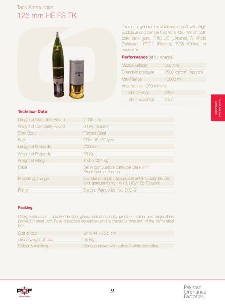 Зазначається, що вказаний боєприпас — це снаряд загального призначення з фугасно-фугасною речовиною, яким можна стріляти з 125-мм гладкоствольної танкової гармати Т-80 УД (Україна), Алхалід (Пакистан), ПТ-91 (Польща), Т-85 (Китай) або аналог.