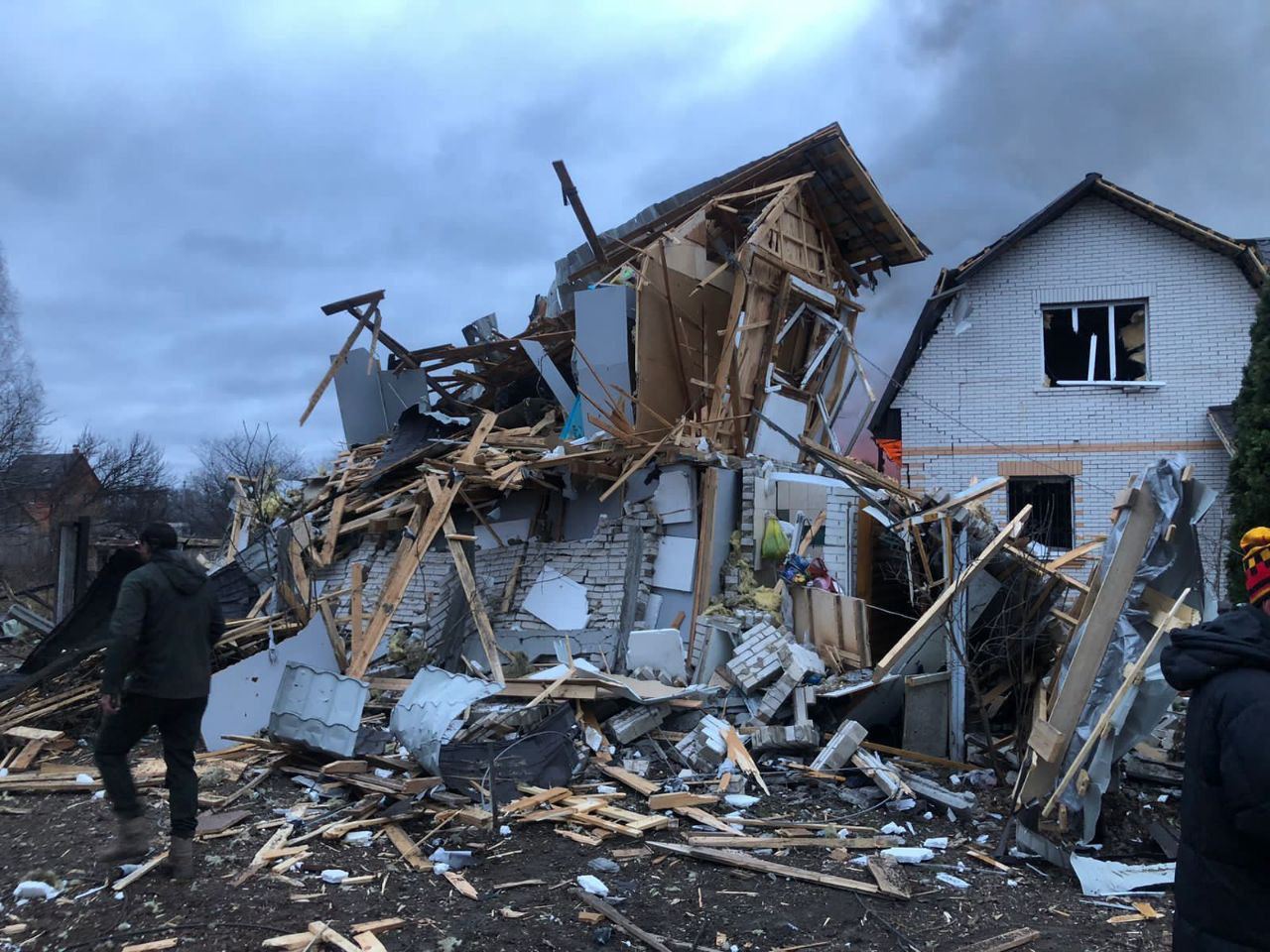 Уламки зруйнували та пошкодили приватні будинки, багатоповерхівку, автомобілі, складські приміщення та електромережі у різних районах Київської області.