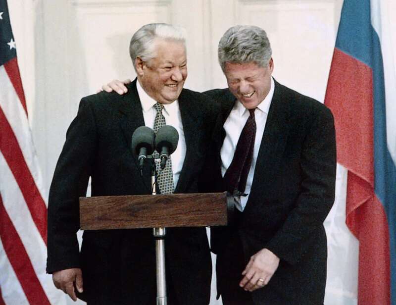 Надії на те, що Росія увіллється в західну цивілізацію, померли разом із Борисом Єльциним (ліворуч, праворуч — Білл Клінтон). ФОТО: DON EMMERT / AFP / SCANPIX / LETA