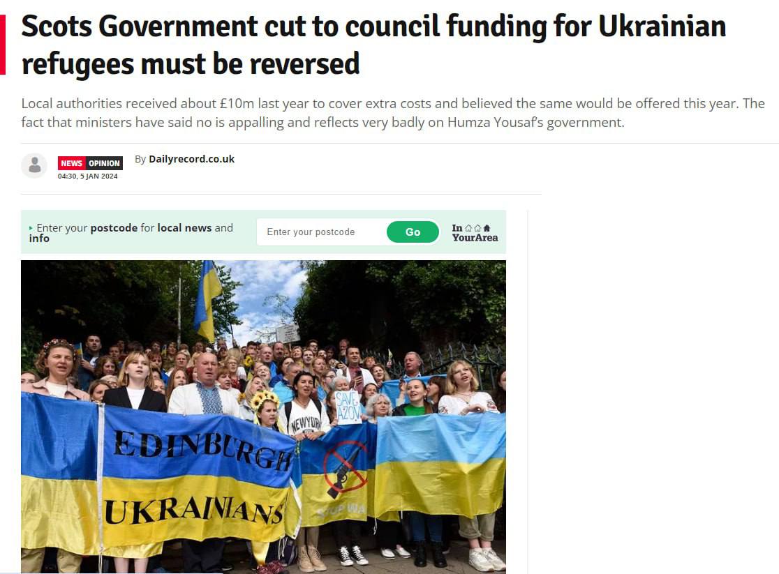 Уряд Шотландії заявив місцевій владі за кілька днів перед Різдвом, що надання фінансування для допомоги українцям в облаштуванні не продовжиться.