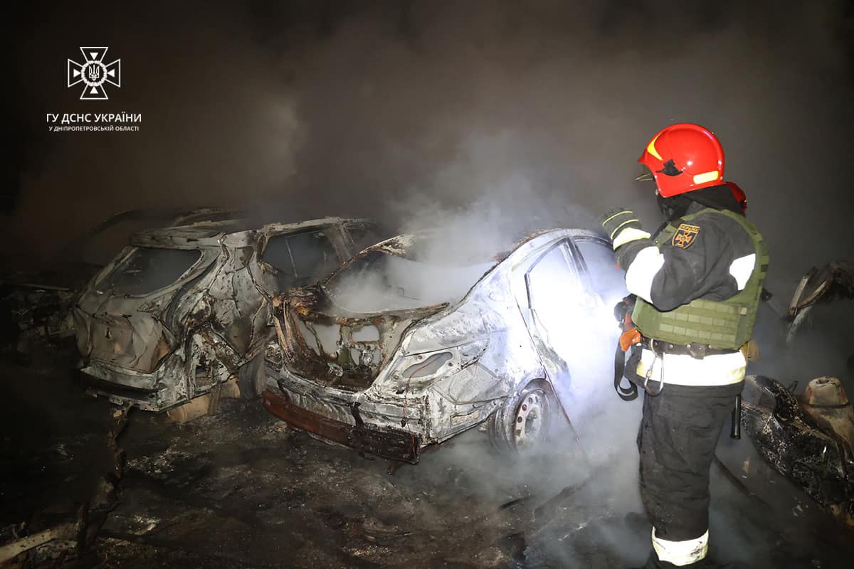Зазначається, що через атаку ворожих дронів у Дніпрі пошкоджено житлову будівлю та знищені легкові автомобілі. Надзвичайники врятували шістьох людей, з яких двоє дітей. Загиблих немає.