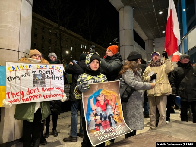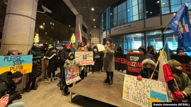 Попри 12-градусний мороз, біля представництва Євросоюзу у Варшаві зібралося 2,5 тисячі людей, щоби нагадати світові про війну Росії проти України і гостру потребу у зброї для захисту цивільного населення.