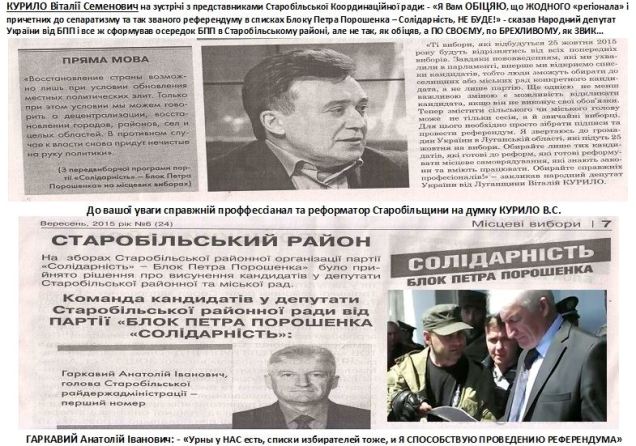 Список Блока Петра Порошенко на местных выборах в Старобельском районе Луганской области возглавил организатор сепаратистского референдума Анатолий Гаркавый.