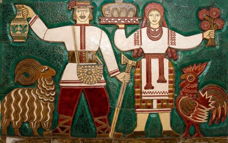 Її знамените панно на станції метрополітену "Хрещатик" складається із 12 типів прямокутних плиток з українським рослинним орнаментом.