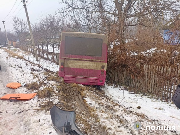 Зазначається, що у межах населеного пункту близько 10-ї години зіштовхнулись рейсовий автобус і легковий автомобіль. Маршрутка виїхала за межі проїзної частини.