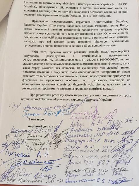 25 народных депутатов подписали обращение к руководителям Генпрокуратуры, Службы безопасности Украины, Министерства внутренних дел и Госфискальной службы относительно преступных схем бывшего народного депутата от Партии регионов Юрия Иванющенко на одесском рынке 7-й километр.